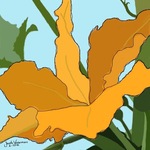 2016Prachtige geelkleurige bloem van de courgette. Heb deze grafisch geabstraheerd tot een mooie compositie. Geheel op de iPad gemaakt in Brushes Redux. Prijs is afhankelijk van grootte fotoprint en inlijsting.