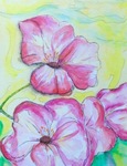 2016Mooie bloemen met veel water opgezet in acryl en zwarte acryllijnen. Formaat 20x30cm op board