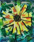 2016Eenvoudige bloem in acryl en houtskool. Eerst kleur opbrengen, dan met houtskool de vorm accentueren. Formaat 20x30cm op board.